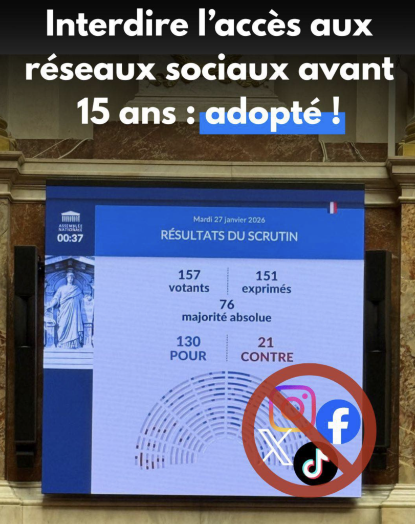 Hier soir, à 0h30, nous avons adopté l’interdiction de l’accès aux réseaux sociaux pour les…